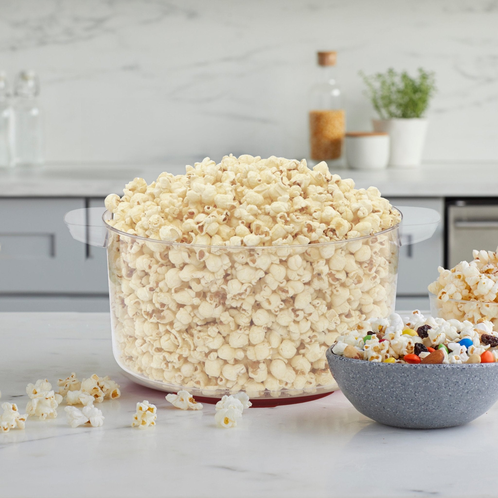 - Dishwasher safe clear, vented cover can be used, with the butter cap, as a popcorn serving bowl