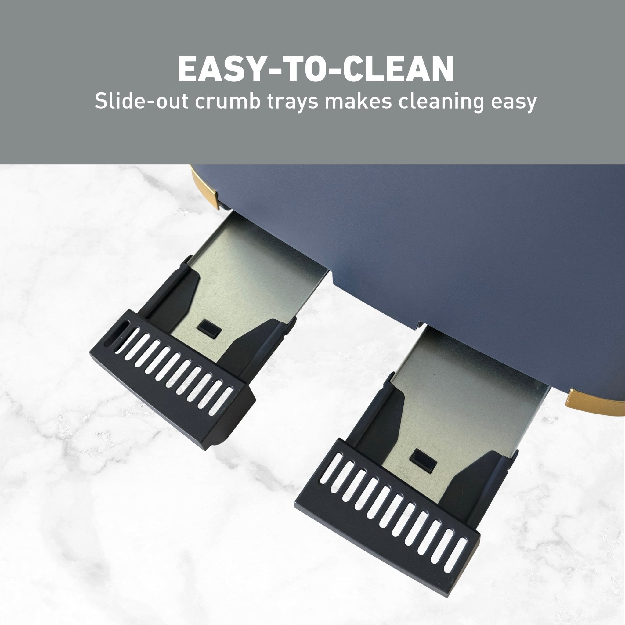 - Beautifully designed toaster with gold accents, including a cool-touch handle to complement any kitchen
