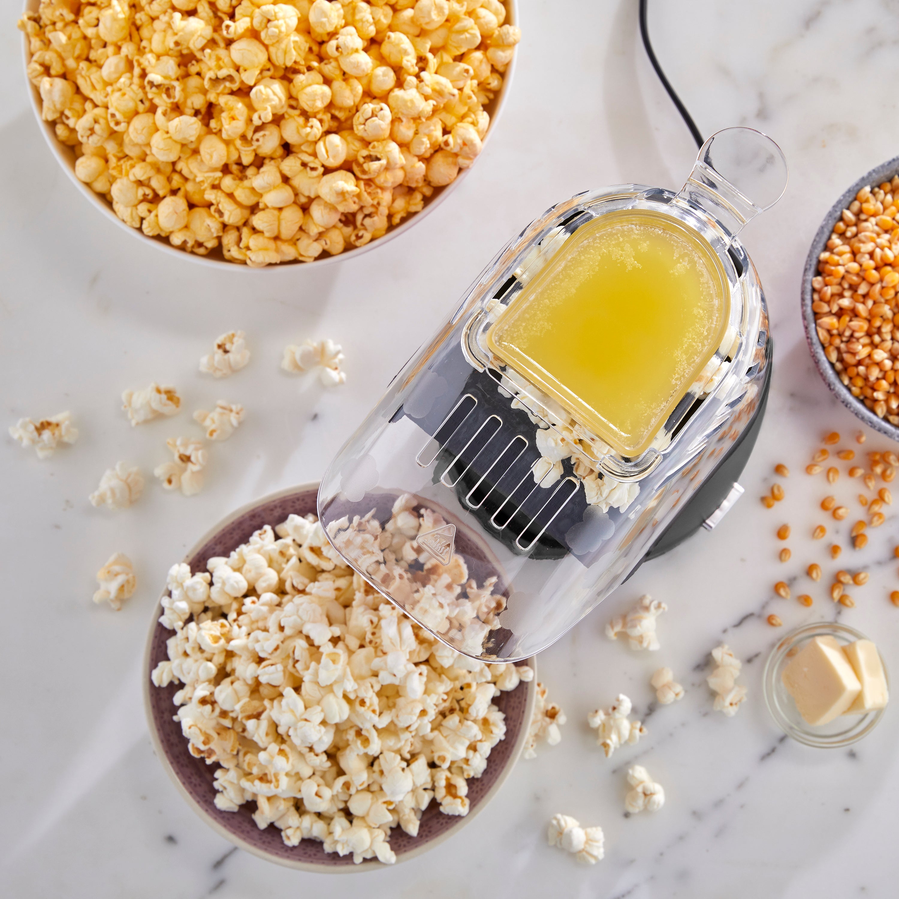 - Dual purpose measuring scoop doubles as butter melting tray