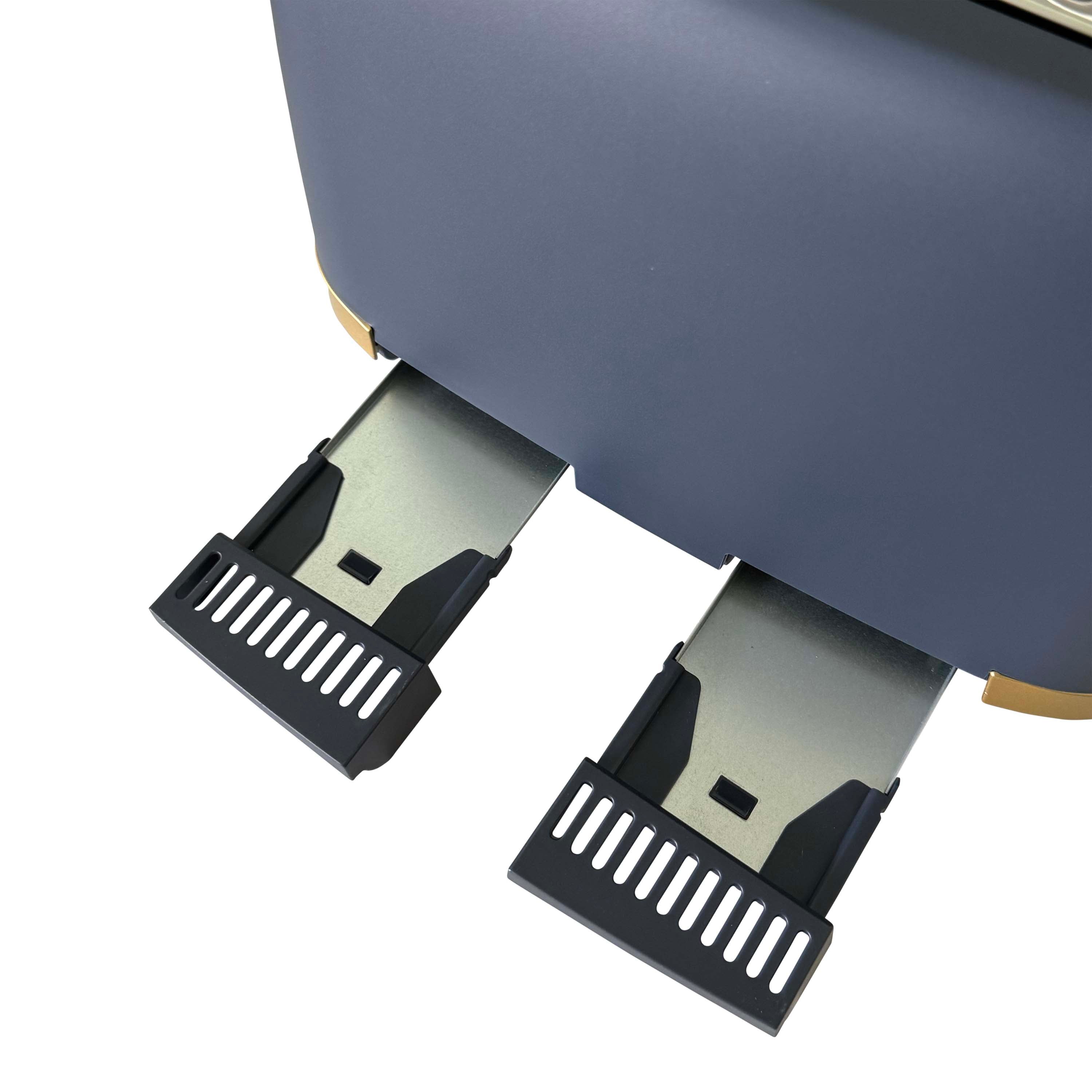 - Beautifully designed toaster with gold accents, including a cool-touch handle to complement any kitchen